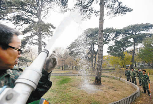 為確保今年綠化成果,保證樹木安全越冬,沈陽目前已全面加強今冬明春綠化養護管理工作。除對樹木進行樹干刷白處理,還將在秋季樹木落葉后至土壤結凍前、或早春土壤解凍后至樹木萌芽前施肥;在11月中下旬,對樹木進行一次冬灌,明年4月中下旬或5月初,對樹木進行一次春灌;在今年12月至明年2月進行樹木修剪;做好越冬防寒工作,對不同的樹木分別進行包裹、涂白、培土、設置風障等。(于海)