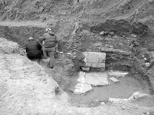 “這座古墓有點奇怪。”11日下午,濟南市考古研究所現場考古領隊何力介紹說,上面這座古墓南北長6.8米,東西寬3.2米,已經遭到建筑方嚴重破壞,現在可以確定是元代的磚室墓。而下面的條石所圍成的建筑,可能是另外一座石室墓,也有可能是一座“地宮”建筑,其年代要早于上面的磚室墓上百年。