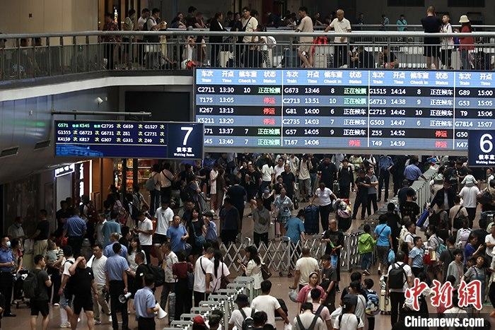 北京西站部分列車因降雨晚點(diǎn)停運(yùn) 旅客滯留