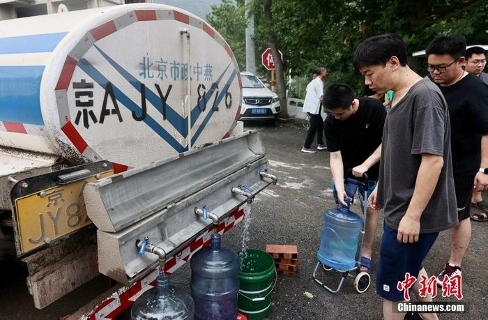 北京門頭溝:陳家莊村村民從應(yīng)急供水車取水