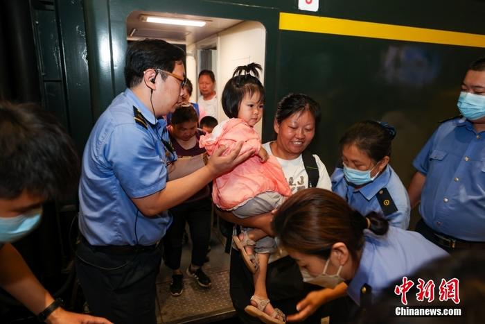 因強(qiáng)降雨被困北京門頭溝的K396次列車旅客抵達(dá)北京豐臺(tái)站