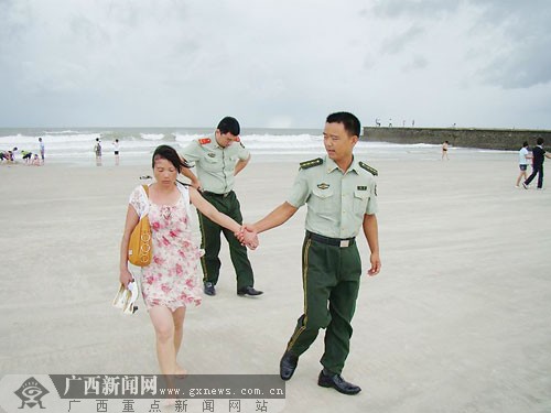 7月17日,一對(duì)夫婦從柳州到北海銀灘旅游。其間,丈夫接了一個(gè)陌生女子的電話,妻子傷心不已,竟欲投海自盡,幸被景區(qū)救生隊(duì)員救起。