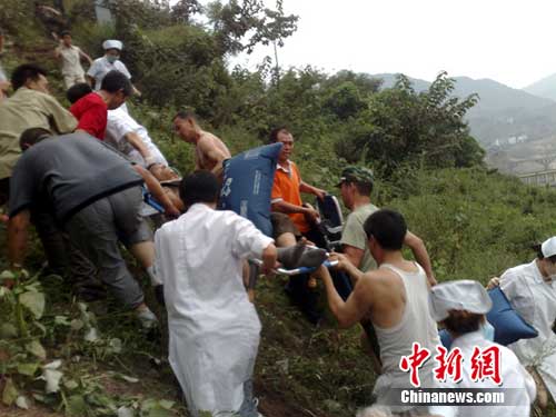 由于出事地點(diǎn)地形十分險(xiǎn)要,公路離崖底大約有30米的垂直距離,根本無路可下,情況十分危急,當(dāng)?shù)卮迕竦膮f(xié)助下找來鋤頭、鐵鍬迅速打開了一條臨時(shí)“生命通道”,趕到現(xiàn)場(chǎng)救援的消防官兵帶上破拆工具鉆進(jìn)車內(nèi)搜救幸存者,傷者被找到并用腰帶將傷者固定在擔(dān)架上,在當(dāng)?shù)卮迕窈偷膮f(xié)助下,用接力的方式抬著擔(dān)架,將傷者抬上路面,并立即送往縣內(nèi)各大醫(yī)院進(jìn)行急救。趕到現(xiàn)場(chǎng)的醫(yī)務(wù)人員判斷,車內(nèi)有一些已無生命跡象。