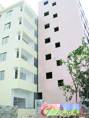“西安那個‘樓擠擠’畢竟還有近一米的間距,握個手還要彎腰伸手才夠得著,可在我們這里,這兩棟樓的間距估計還不到10厘米,一對情侶站在兩棟樓的陽臺上不用彎腰就可以臉貼臉地擁抱了!”這位爆料網友稱,繼“樓倒倒”、“樓歪歪”后,又出現了“樓抱抱”的新景觀。