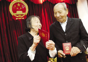 浙江溫州百歲老人登記結婚 已經(jīng)戀愛8年(圖)