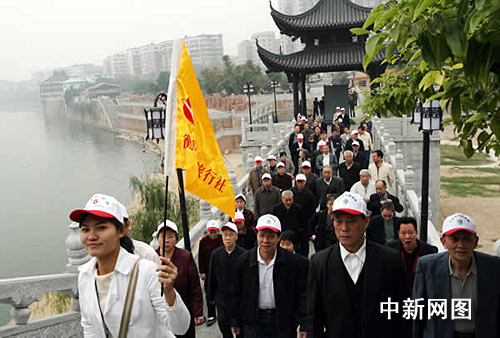 中新網(wǎng)長(zhǎng)沙10月19日電(王永華)今天是農(nóng)歷的九月初九,中華民族傳統(tǒng)的重陽(yáng)佳節(jié)。為歡度重陽(yáng)節(jié),湖南衡陽(yáng)市今天主辦了千名老人游雁城活動(dòng)。上午,千名老人頭戴統(tǒng)一的遮陽(yáng)帽,分乘30輛大巴分別向陸家新屋、湘聯(lián)學(xué)聯(lián)、湖湘文化館、石鼓書院等6個(gè)景點(diǎn)參觀。