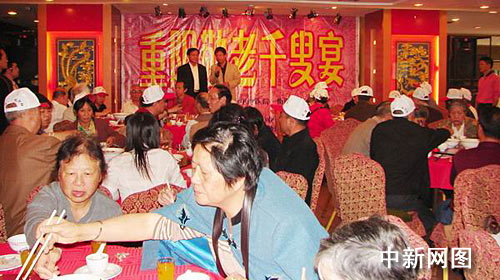 中午,出游歸來(lái)的千名老人又相聚在王府酒樓參加“千叟宴”,舉杯共慶“重陽(yáng)節(jié)”。席間但看壺中酒,杯杯先敬老年人。衡陽(yáng)市長(zhǎng)彭崇谷在盛宴開始后,舉杯向老人們敬酒。席間,主辦方還朗誦了清朝康熙皇帝在陽(yáng)春園第一次舉行千人大宴中席賦的《千叟宴》詩(shī)一首,博得老人們的陣陣掌聲。今年已80高齡的鄭仲儀老人飲了兩杯酒后,興奮不已,對(duì)記者說(shuō),自己還從來(lái)沒有與這么多的老年人一同赴宴,能參加這樣的盛宴,不管吃什么自己都覺得很開心。回去后將告訴兒孫們,要把中華民族敬老愛幼的傳統(tǒng)美德一代一代傳承下。