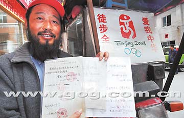 男子歷時7年步行全國宣傳奧運 明年走完港澳臺