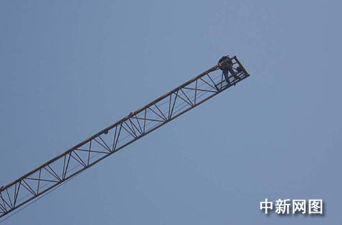 中新網湖州10月28日電(記者 柴燕菲 通訊員 趙永需)10月26日下午,湖州市一高層建筑工地發生了一起農民工討要工錢欲跳塔吊事故,消防官兵聞警出動,憑借著指揮員和公安民警的果斷決策和智慧,經過30多分鐘的努力,終于將輕生男子從50多米高的塔吊上勸服了下來。