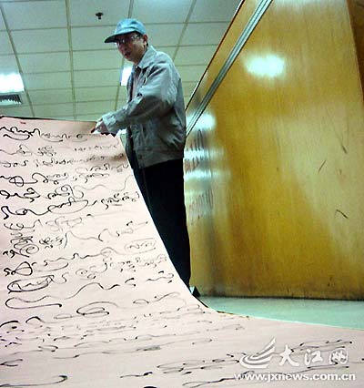 殘疾書法家獨創“飛白”體 書寫208米長卷(圖)
