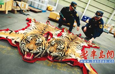 得到線索后,海關(guān)緝私部門立即趕赴煙臺,到黃某的暫住地進(jìn)行搜查,執(zhí)法人員共搜出虎皮一張,虎鞭、虎膽、虎牙制品各一件,虎骨若干。加上執(zhí)法人員9月21日查扣的那張虎皮,涉案總額達(dá)100萬元。同時(shí),執(zhí)法人員將另一名涉案的中國籍犯罪嫌疑人抓獲。