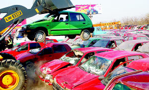 當天,記者在銷毀現(xiàn)場看到,113輛等待銷毀的違規(guī)車輛列成4排,車輛中以夏利出租轎車居多。11時30分,在市城市交通局、烏魯木齊市客運統(tǒng)管辦相關(guān)領(lǐng)導的監(jiān)督下,一輛重型鏟車的鐵爪逐一砸向非法營運車輛,頃刻間車輛被壓癟成為一團廢鐵,不到一小時,113輛非法營運車被全部銷毀。