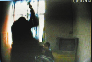 我馬上站起來(lái),一只手跟他搏斗,一只手打開了防盜門,當(dāng)時(shí)的動(dòng)靜很大,外面接應(yīng)的同事也都聽見了,他們?cè)议T砸了五六下,門開了,沖進(jìn)來(lái)就控制了周某。
