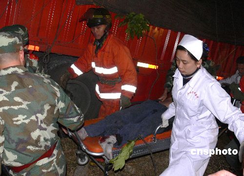 圖為最后一名傷員被救出。中新社發(fā) 胡明軍 攝