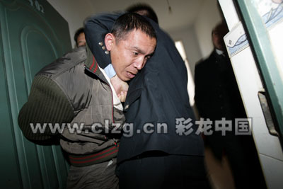 面對突然出現的法警,劉某似乎早有心理準備,起身換好皮鞋準備出門。然而,正當法警準備給劉某戴手銬時,站在一旁的劉某的妻子失聲哭了起來:“你們要帶他去哪兒啊?……”聽到妻子的哭聲,原來故作平靜的劉某開始激動起來:“我不是不讓你們銬,你們要戴手銬就銬在前面,不要銬在后面!”劉某一邊叫一邊和法警對抗著,而一旁的劉某妻子也跑到了丈夫身邊,拳打腳踢地試圖阻止法警帶走丈夫。但最終,3名法警還是將劉某的手銬上。