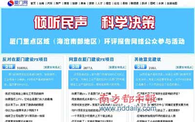 欄目的具體內容也發生了變化。原來分為“反對”、“同意”和“其他”的三個欄目已經不見了,不過從“網友觀點”的欄目鏈接里,仍可以進入發表意見的專門論壇。記者發現,在該論壇近500個帖子中,反對PX項目建設的帖子占了絕大多數。