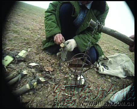 記者和知情人小強躲在草叢里,小強說:“他們就是捉雁人,撒下的只是少量的毒餌,最頂用的是他們正在設置的那一串串鐵夾,那是連環套,大雁被夾上就完了。”