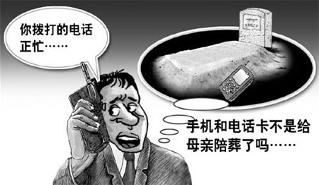 但就在幾天前,陳某一不小心撥打了存在自己手機里的母親的手機號碼,卻聽到了占線的忙音,陳某懷疑自己撥錯了,就又撥了一遍,結果還是忙音。手機明明下葬了呀,想到這,他不禁出了一身冷汗。晚上,他翻來覆去難以入睡,越想越覺蹊蹺,就把這事告訴了妻子。二人一商量決定第二天到移動公司問個明白。沒想到一問不要緊,更奇怪的事出現了,電腦上竟然顯示出了該手機在母親去世后一個月的通話費用,夫妻倆面面相覷,心里直發毛,思來想去,他們決定報案,讓警方查個明白。