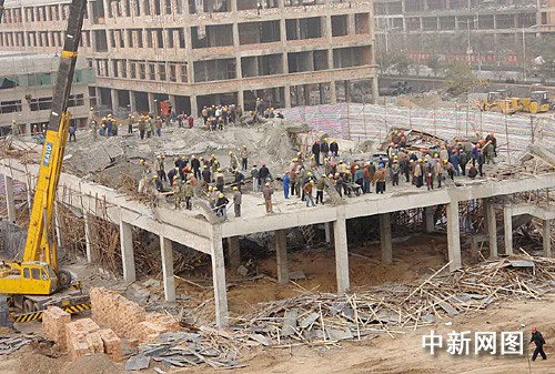 侯馬新建西客站候車大廳倒塌搶救現(xiàn)場。作者:長年