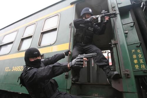 3名悍匪竄上從重慶開往深圳的一列火車,劫持了2名乘客。特警隊員爬上火車頂、翻窗進入車內,成功將悍匪制服。昨天,在重慶北火車站,一場精彩的反恐演練讓人看得目瞪口呆。