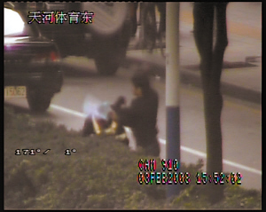 據事件目擊者賈先生稱,昨日下午4時多,他跟同事經過位于正佳廣場東面的大廈時,目睹了董某對交警施暴,“那個交警任他打,一點都不還手。”賈先生說。而坐在監控室里的一名交警則從錄像中看到了阿華被打的全過程。該名交警告訴記者:“我看著那個錄像,真是急啊!打人的那個人很高大,估計有一米八幾,是個二十出頭的年輕小伙。他一路追著阿華打,阿華退了七八米,他還是繼續打,還使出鷹鉤拳,并用腳踢阿華的腹部。”