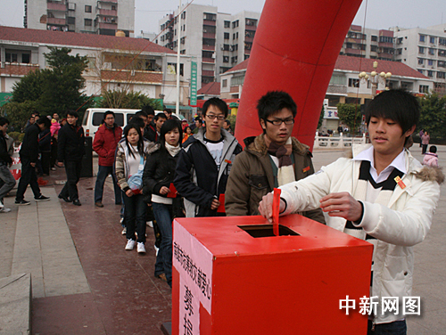 中新網韶關2月10日電 (馮昶 朱祖純 曾誠) 大年初三,廣東南雄市三影塔景區廣場內人流涌動,一場聲勢浩大的“我與災民心連心”募捐活動正在舉行,來自各條戰線的干部、企業等數千人紛紛伸出援助之手。引人注目的是一批當地在外打工的青年人、學生和社團組織自發捐款,用真情表達對今年冰雪災區民眾的一片愛心。