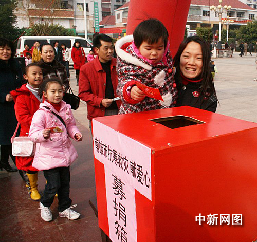 南雄市借助春節人們團聚的機會,利用電視、公益告示、宣傳車等各種宣傳渠道,廣泛發動社會各界力量,開展“我與災民心連心”募捐活動,以各種形式為災區送溫暖獻愛心。