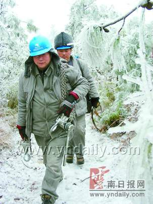 據(jù)曲靖供電公司總經(jīng)理姜洪東介紹,轄區(qū)整個(gè)輸電網(wǎng)絡(luò)設(shè)計(jì)是按照30年一遇的冰凍災(zāi)害設(shè)計(jì),覆冰厚度設(shè)計(jì)是按照5-20毫米厚度,現(xiàn)在實(shí)地察看以后,覆冰厚度局部達(dá)到40毫米以上。記者獲悉,沾益縣多個(gè)片區(qū)鄉(xiāng)村,播樂(lè)鄉(xiāng)水田村,白水鎮(zhèn)哈拉益片區(qū)等地約2900余戶停電,市縣相關(guān)電力公司正努力組織人員進(jìn)行搶修。