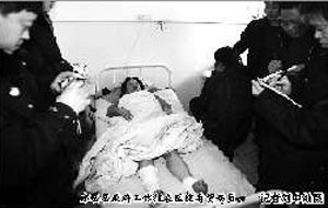 躺在病床上的民工劉國華四肢都被砍傷,渾身上下綁滿繃帶。看見家鄉來人,他掙扎著爬起來,緊緊握住張華的手,哽咽半晌不能言語。不一會兒,病房內便擠滿了聞訊趕來的鄖縣民工。