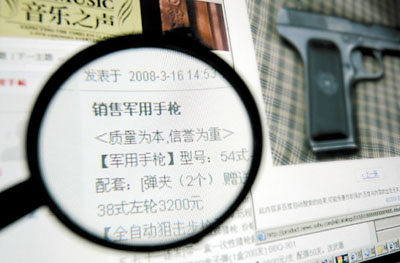 16日下午,海南一男子在重慶某網站發帖子,稱可以銷售各種型號的軍用手槍和全自動狙擊步槍。重慶市公安局網監管理處工作人員稱,已經對此事備案,正在查處,提醒市民不要上當。