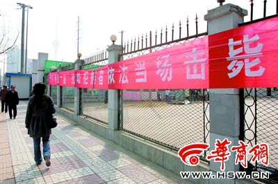 繼去年8月份海口警方在街頭掛出“搶劫拒捕當(dāng)場(chǎng)擊斃”宣傳橫幅,引起社會(huì)各界的廣泛關(guān)注之后,類似內(nèi)容橫幅近期也出現(xiàn)在西安街頭。