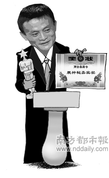頒獎詞:馬云不是人大代表,卻出現在人大代表團的會場,和廣東省委書記汪洋演了一出“汪馬會”。“阿里巴巴模式是否可為面臨轉型的廣東中小企業提供一條新路?”“阿里巴巴和廣東下一步如何深化合作?”在中國電子商務領域長袖善舞的馬云,微笑不語,將神秘進行到底。