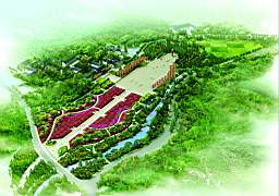 休閑空間主要定位于游客休閑與參觀銅像前瞻仰氣氛的營(yíng)造。在中軸線上布置有景觀大道和詩(shī)刻石景。