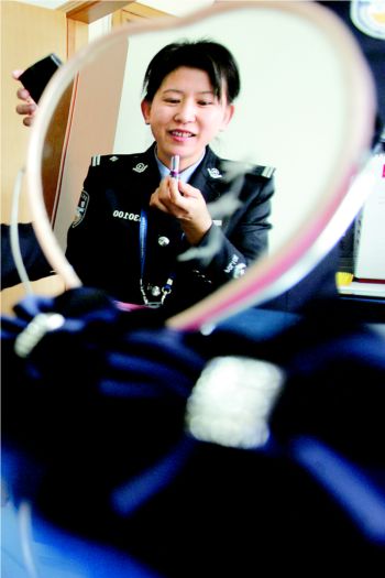 “警花”們上崗前都要統一化淡妝,頭花是經過認可的統一佩戴。