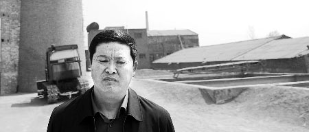 昨日上午10時許,省環保局監察總隊負責人孫自臣帶領執法隊員來到一片煙囪林立的磚窯場,穿過一條煙塵滾滾的土路后,執法隊員看到在一堆高10多米的礬土礦石后面就是被舉報的土煉制廠。