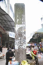 昨日記者專程來到中和鎮政府門前30米的一個街道拐角處看到,一塊高約5米的正方形石柱矗立在街道中央,石柱的正前方刻有“抗美援朝烈士紀念碑”9個楷體大字。碑的右面書有“謝興發、劉元明烈士,1951年12月30日敬立”字樣。紀念碑的四面都貼了不少廣告單,有“住房出租”、有“治療結核病”等,還有一些則是“性病專科”等等。紀念碑基座上,還有生意人擺放了不少干雜貨物在此兜售。