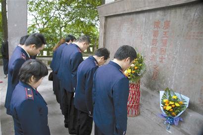 昨日,在此陵墓前,岳池縣國稅局的干部們前來悼念,并打掃了陵墓前的清潔衛生。對于父母的烈士陵墓,廖亞彬坦言:“政府對我父母的英勇事跡沒有忘記,也經常組織人員前來祭奠,我們很滿意。”