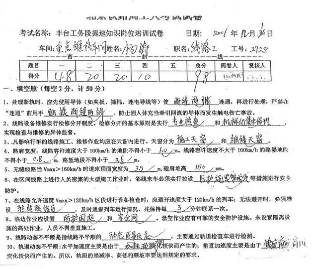 一審過(guò)程中,北京市鐵路局提供了一份試卷,法院據(jù)此認(rèn)定“從其工作狀態(tài)及崗位培訓(xùn)考試成績(jī)來(lái)看,其智力、精神狀況未受影響。”對(duì)于法院用一份試卷否定司法精神醫(yī)學(xué)鑒定結(jié)論,黃樂(lè)平律師難以理解:“在一審中,楊濤的親屬多次否認(rèn)單位遞交的試卷的真實(shí)性,并向法院遞交了楊濤的筆跡,以供一審法院查明事實(shí)。但是,法院最終還是憑這份有偽造嫌疑的試卷,推翻專業(yè)司法鑒定機(jī)構(gòu)所作的司法精神鑒定。”