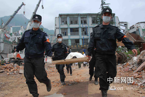 5月15日是災(zāi)后第3天,“時間就是生命”,廣東支援災(zāi)區(qū)的公安特警和公安邊防、消防武警官兵頑強拼搏,日夜奮戰(zhàn),以高昂的斗志爭分奪秒開展救援工作。
