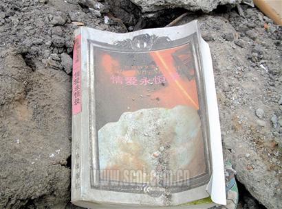在青川縣濱河街一居民樓瓦礫中,有一本上面布滿灰塵的書(shū)——《情愛(ài)永恒錄》。的確,在廢墟上的情愛(ài)是永恒的、是香甜的。