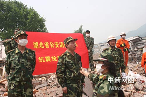 16日上午9時,湖北省消防總隊劉建平總隊長飛赴成都,趕赴青川、綿竹現場指揮總隊抗震救災工作。16日上午,曾慶亮副總隊長、李漢旗參謀長率領部隊160名官兵在青川縣關莊鎮開展山體滑坡救援,現場已配備一部海事衛星電話。同日上午,王穩國副政委率領部隊150名官兵在四川綿竹市漢旺鎮開展建筑物倒塌救援。(完)