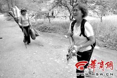 在山外的圍山環路路邊,78歲的王老太自言自語,問過之后才知道他53歲的兒子在地震中死了,死前中午只喝了一碗稀飯。在交談的時候她表情變化非常快,哭著說著馬上就能笑出聲。