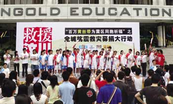 昨日下午2時(shí),由新快報(bào)、廣州電臺(tái)FM102.7、南方電視臺(tái)、新浪網(wǎng)四大媒體攜手廣東省慈善總會(huì),在正佳廣場(chǎng)西北門(mén)和廣東新快報(bào)社主樓前(天河路533號(hào)僑鑫教育大院)兩大主場(chǎng),舉辦“祈福同胞,愛(ài)心飛揚(yáng)———百萬(wàn)黃絲帶為震區(qū)同胞祈福之全城抗震救災(zāi)募捐大行動(dòng)”。活動(dòng)還在廣州崗頂好又多、天河城、江南西-廣百新一城、天河購(gòu)書(shū)中心-維多利亞廣場(chǎng)、正佳廣場(chǎng)、友誼商店-世貿(mào)、荔灣廣場(chǎng)南門(mén)-上下九、中華廣場(chǎng)-流行前線、北京路-廣百、新光廣場(chǎng)-康王路、越富大廈等11個(gè)繁華地段設(shè)50個(gè)流動(dòng)募捐點(diǎn),廣州青年志愿者協(xié)會(huì)還派出超過(guò)300名志愿者。