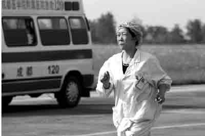 傷員很快就被轉(zhuǎn)移到120急救車上,他們要被送往成都。杜娟返回了飛機,“家里還有好多病人”。事實上,從大地震爆發(fā)后,禹里羌族鄉(xiāng)衛(wèi)生院的醫(yī)護人員就一直在治療傷者。兩個多小時后,杜娟再次隨飛機往返來到廣漢機場。她有了兩天的“假期”,她說要去找自己的丈夫,帶著一個紅色磚頭大小的小包。如果找不到,她還要重回禹里,帶些藥品回去。“北川縣城能找到人的地方都找了,不可能找到了。”她的哥哥說。(記者 駱永紅 徐一龍 攝影)