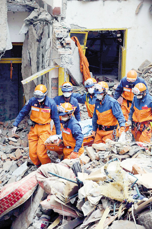昨晨(5月18日),在重災區(qū)(四川省)綿陽市北川縣北川中學施救現場,多了幾十名國外救援者的身影——他們是日本國際應急援助隊的隊員。截至昨下午1時,日本救援隊已找到深埋樓底的6名學生遺體。
