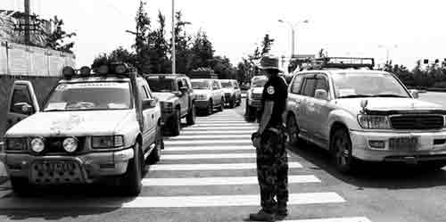 “狼群”車隊(duì)里,個個都是大老板、有錢佬,看他們開的車就知道———清一色的四驅(qū)越野車,盡是“悍馬H3”、“途樂Y60”、“豐田4700”等。