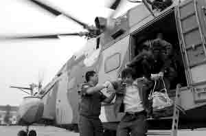 隨著救援工作從縣級城市向周邊鄉(xiāng)鎮(zhèn)的延伸,被地震和泥石流大面積破壞的山間公路越來越嚴重地影響到地面搜救的推進速度,在這樣嚴峻的形勢下,開辟一條迅捷安全的空中通道顯得尤其重要。綿竹清平鎮(zhèn)、彭州銀廠溝、汶川縣映秀鎮(zhèn)……將這些點與成都串聯(lián)起來,便是南空某搜救團開展抗震救援實施行動以來的航線圖。