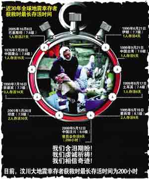 湖南的醫(yī)療隊介紹,7時許,老太太被抬上救護車緊急送往彭州醫(yī)院。從12日下午被埋開始到被解救的196小時,老太太沒有吃任何東西,只是間歇地喝了點雨水。醫(yī)生介紹,老太太神志比較清晰,已被送到成都華西醫(yī)院治療。