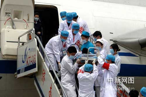 今天下午,首批共10名在四川汶川大地震中受傷的傷員乘飛機抵達青島。記者了解到,首批傷員被安置到青島市醫(yī)療技術(shù)和設(shè)施水平高的市立醫(yī)院接受進一步治療。首批到來的10名傷員中73歲以上的老人有6人,其中年齡最大的已92歲。