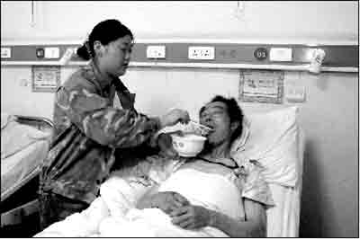 昨天是陳仁平在綿陽第三醫院的最后一晚,胃口極好的他晚餐吃了3個餃子。在北川陳家壩的山中被埋后,56歲的陳仁平靠著兩個雞蛋硬撐了169個小時,經過診斷,他的盆骨骨折。